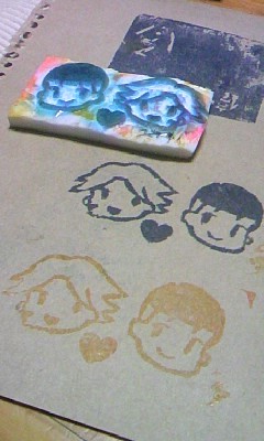 英二のはねた髪や絆創膏に苦戦しつつも何とか彫り終え、早速押してみました。